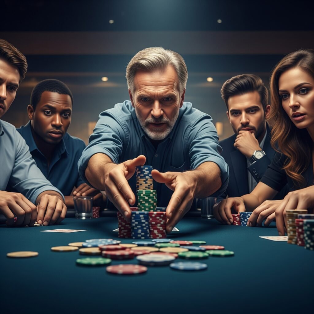 - จุดประสงค์: เพื่อผลักดันชิปทั้งหมดเข้า Pot และต้องการให้ Pot ใหญ่ที่สุดเท่าที่จะเป็นไปได้ เพราะมั่นใจในมือตัวเอง (หรือบลัฟครั้งสุดท้าย)